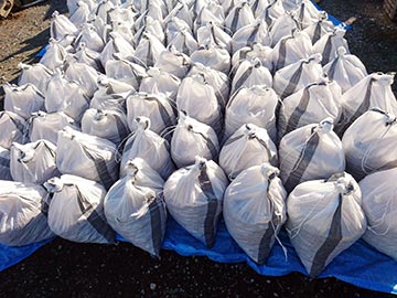 土嚢袋に砂を詰めての配達